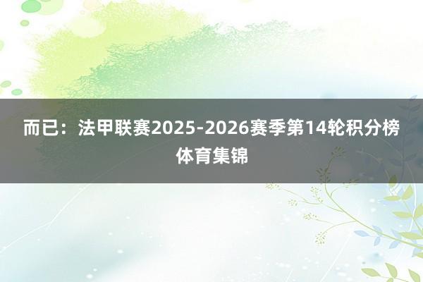 而已:法甲联赛2025-2026赛季第14轮积分榜体育集锦