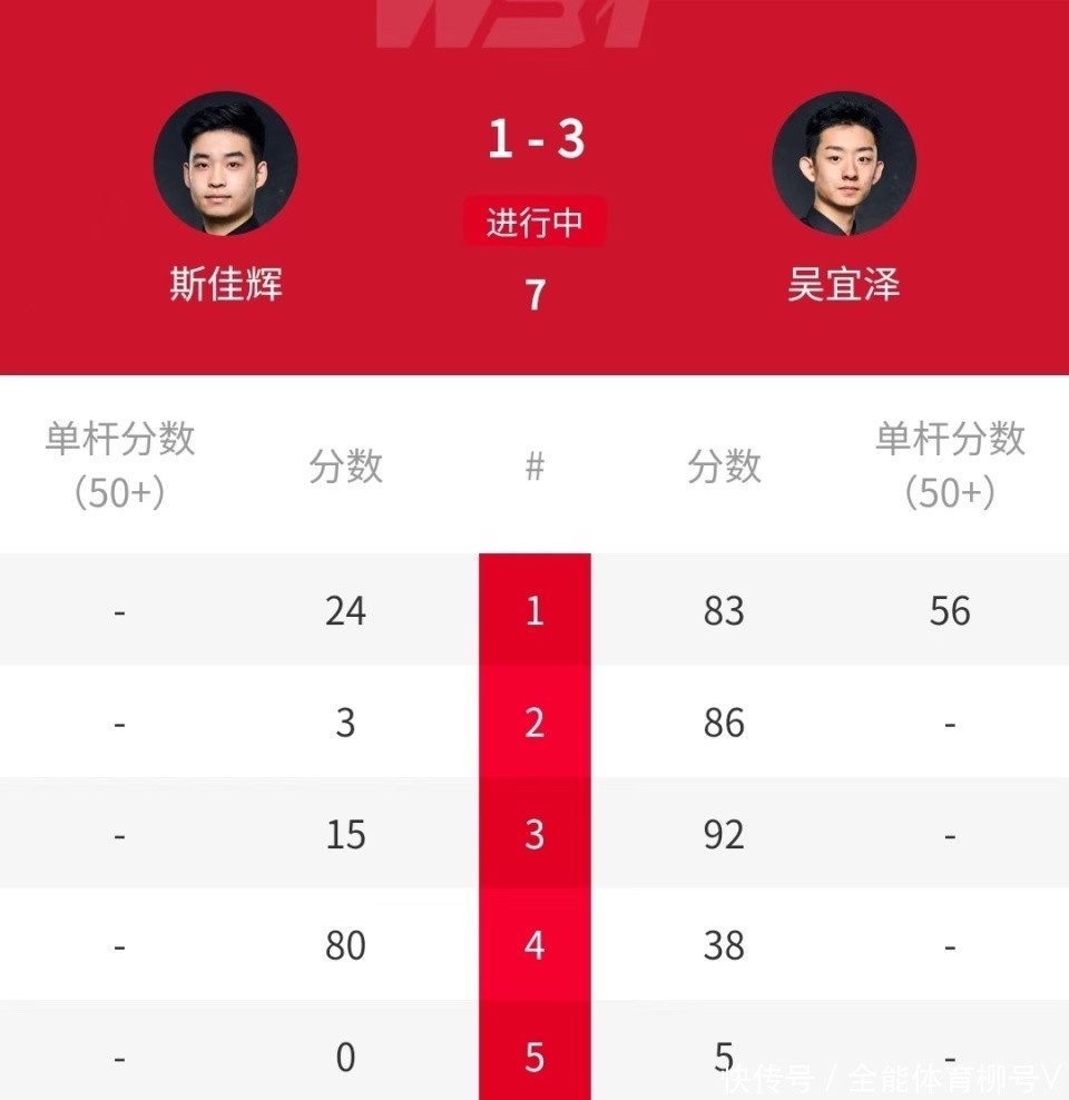 这场比赛,吴宜泽一上来插足景况较快,他在前三局取得3-0的跨越上风。第一局,吴宜泽通过零敲碎打,76-34先胜一局,1-0强势开局。