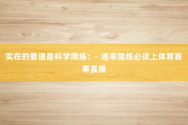 实在的要道是科学闇练:- 速率闇练必须上体育赛事直播